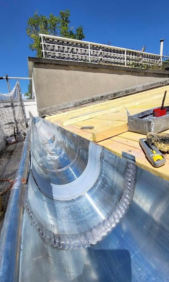 La zinguerie est essentielle pour une bonne évacuation des eaux pluviales. Nous installons et réparons vos gouttières, chéneaux, et autres éléments pour éviter les infiltrations d’eau.
